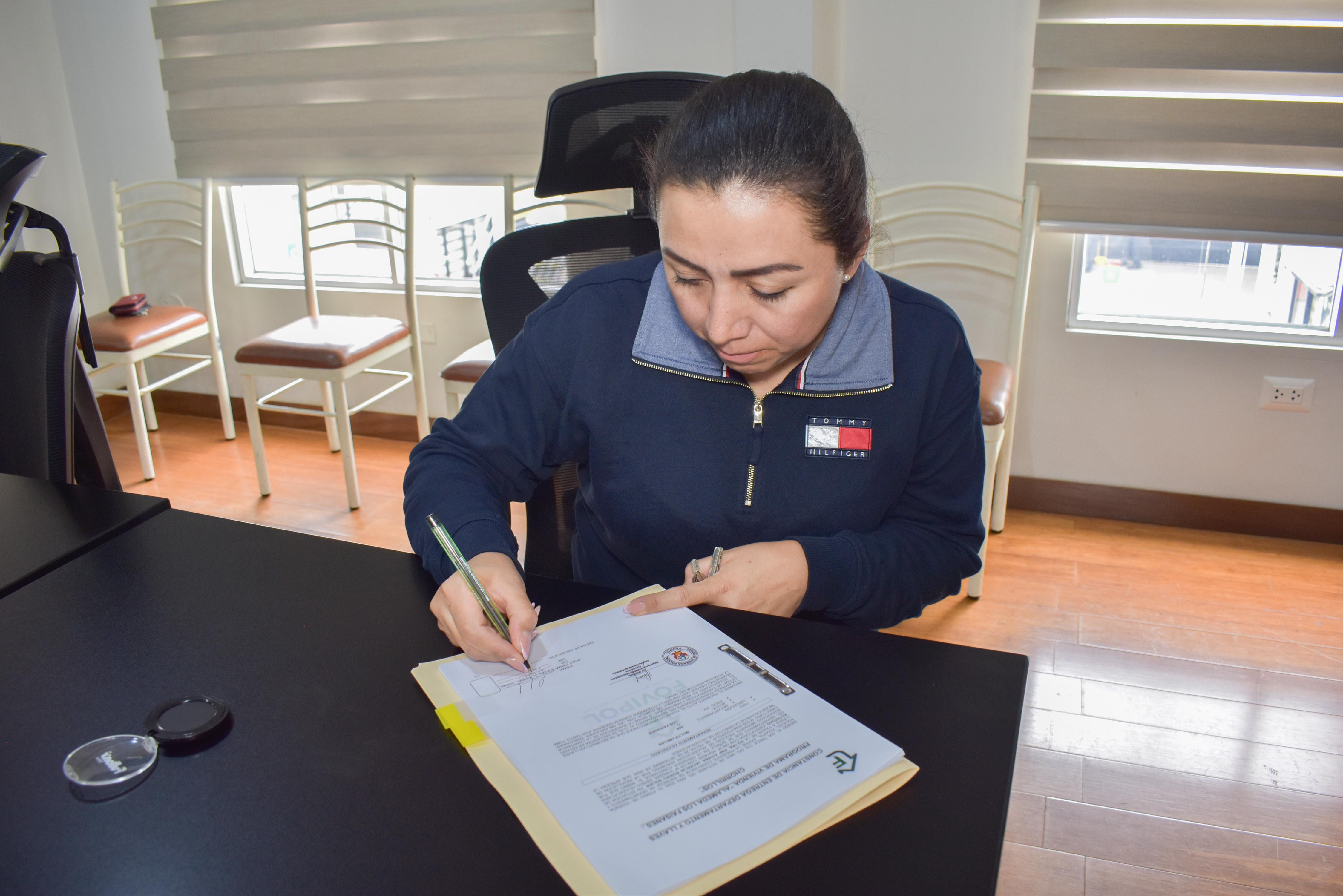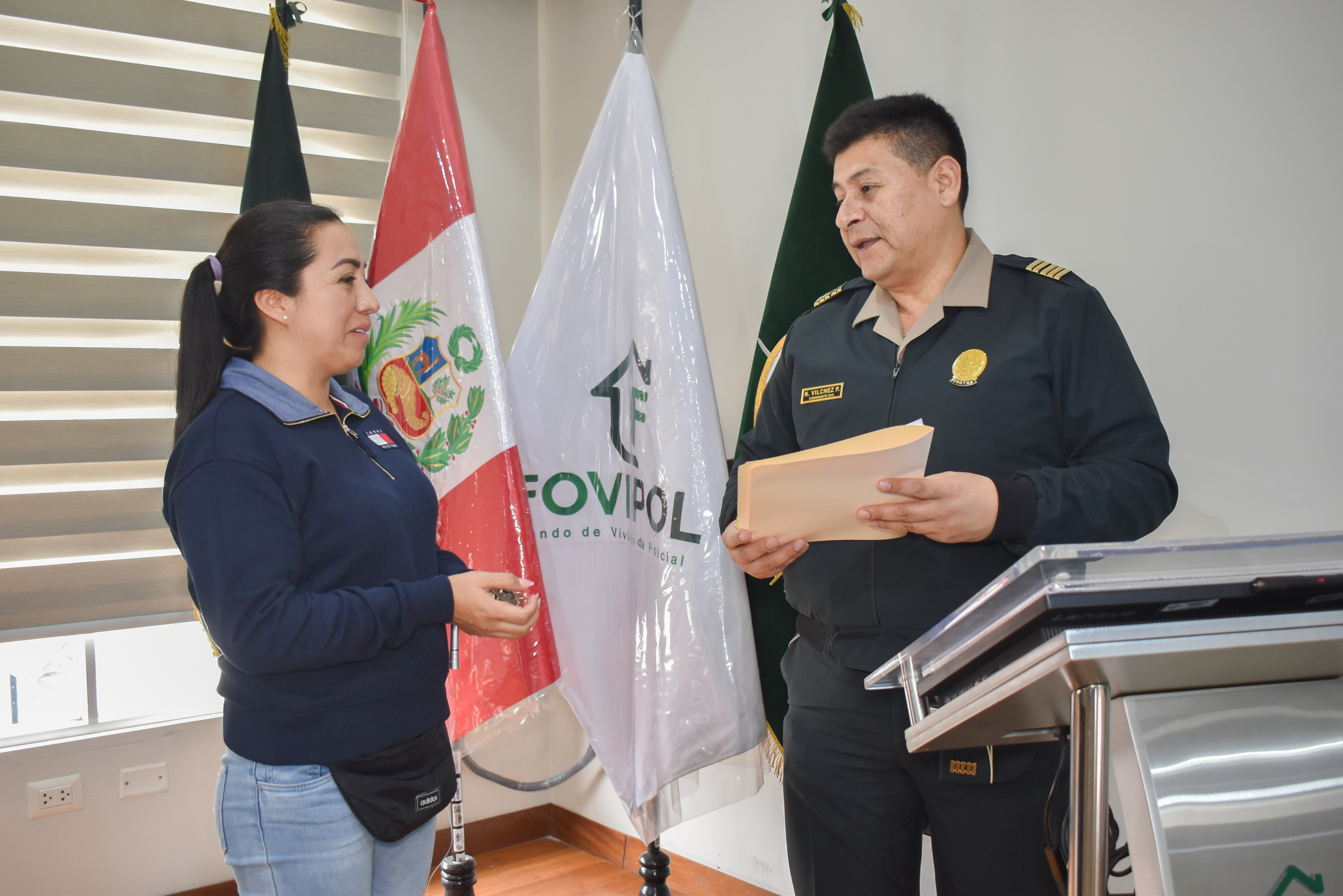 En la ceremonia participaron representantes de la Unidad de Adjudicaciones, el Comandante PNP Néstor Hugo Vílchez Penadillo, Jefe de la Oficina General de Administración, y el equipo de la Unidad de Comunicación e Imagen Institucional, quienes acompañaron a la beneficiaria en este importante logro personal y familiar.