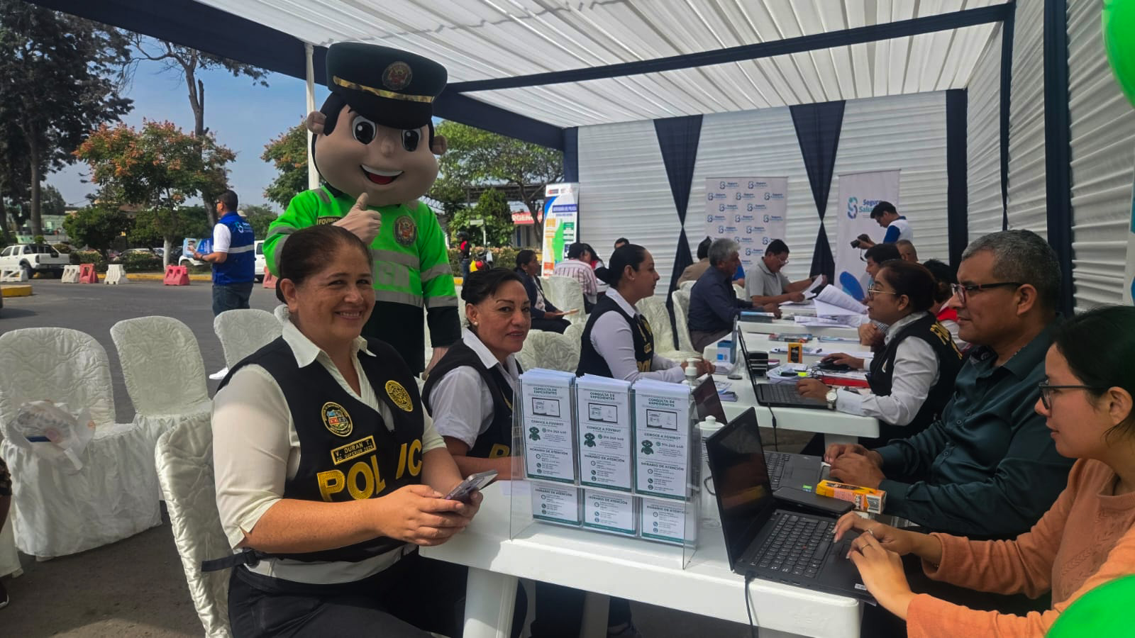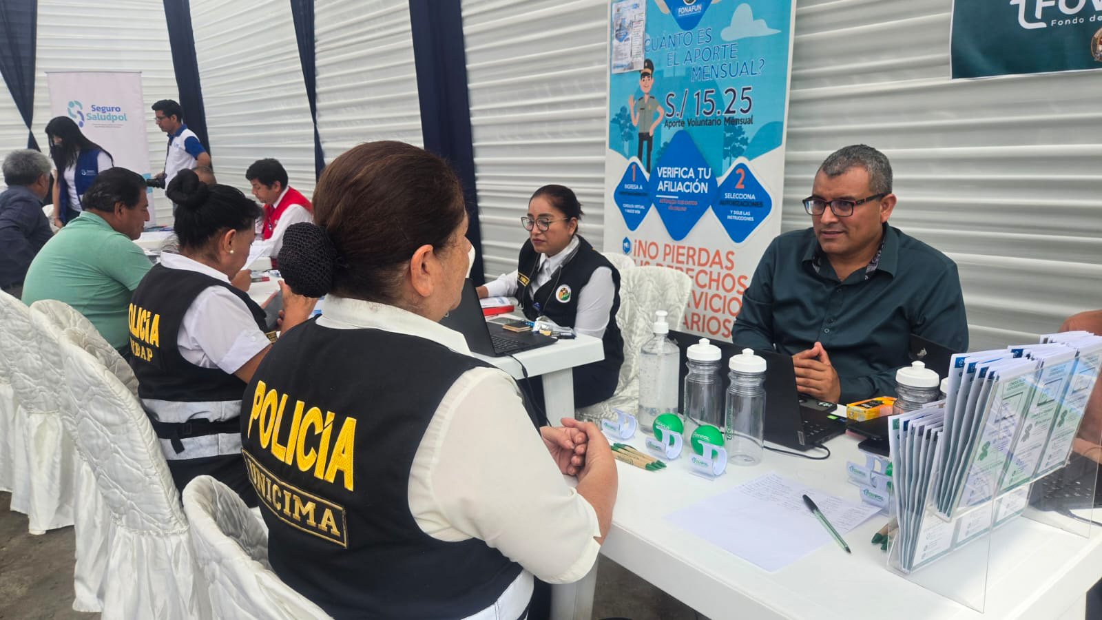 La actividad se desarrolló en el Complejo Policial Juan Benites Luna, donde personal de FOVIPOL brindó información directa sobre los beneficios actuales y los próximos proyectos de vivienda dirigidos a los miembros de la Policía Nacional del Perú.